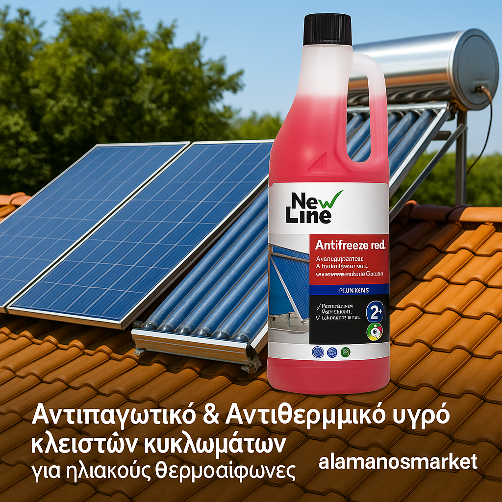 Συμπυκνωμένο αντιψυκτικό υγρό με ιδιαίτερη αντιψυκτική ικανότητα έως -12°C και αντίστοιχη αντιθερμική έως 102°C. Προστατεύει και εξασφαλίζει τη σωστή λειτουργία του ηλιακού θερμοσίφωνα, ανεξαρτήτως καιρικών συνθηκών για όλο το χρόνο. Αποτρέπει την εκδήλωση των ακραίων φάσεων νερού