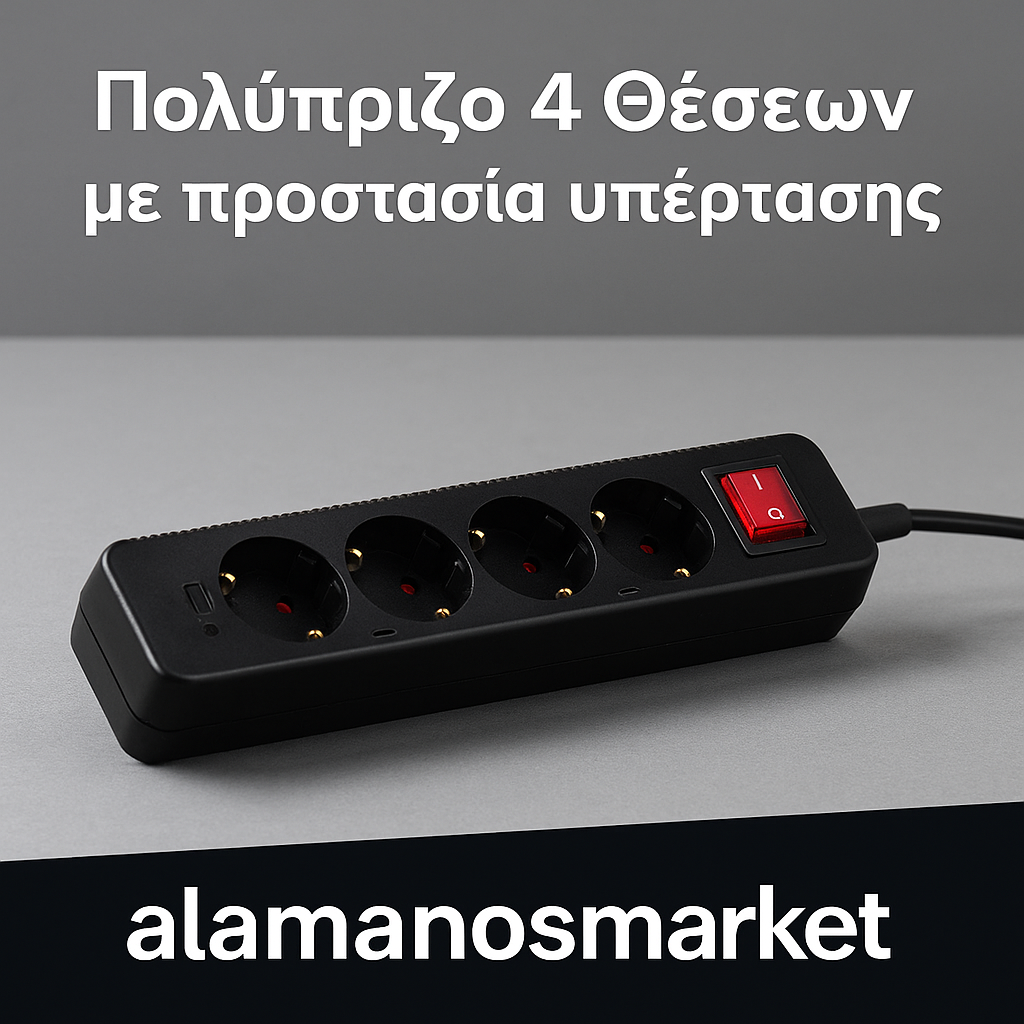 Πολύπριζο 4 θέσεων με προστασία υπέρτασης μαύρο