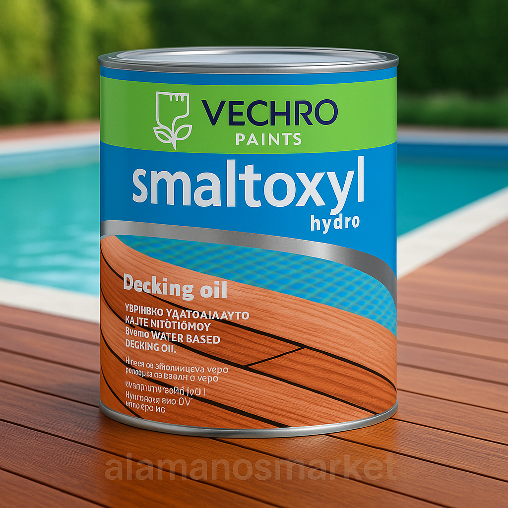Το Smaltoxyl hydro Decking Oil είναι χαμηλής οσμής ΥΒΡΙΔΙΚΟ υδατοδιαλυτό λάδι εμποτισμού το οποίο εφαρμόζεται εύκολα και στεγνώνει γρήγορα για την ταχεία ολοκλήρωση της εργασίας. Παρουσιάζει αντοχή στο χλωριωμένο νερό και στο θαλασσινό νερό.